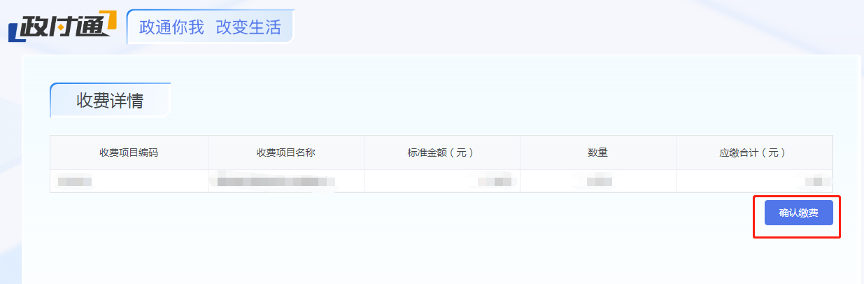 2.跳转至收费详情页面,确认后点击确认缴费。