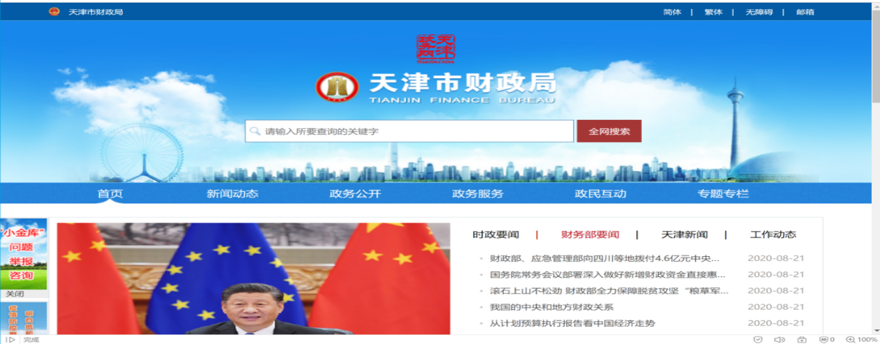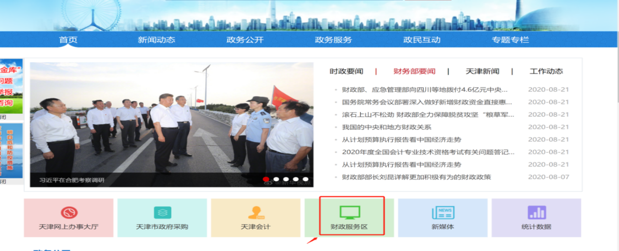 1.登录天津市财政局官网,地址为:cz.tj.gov.cn