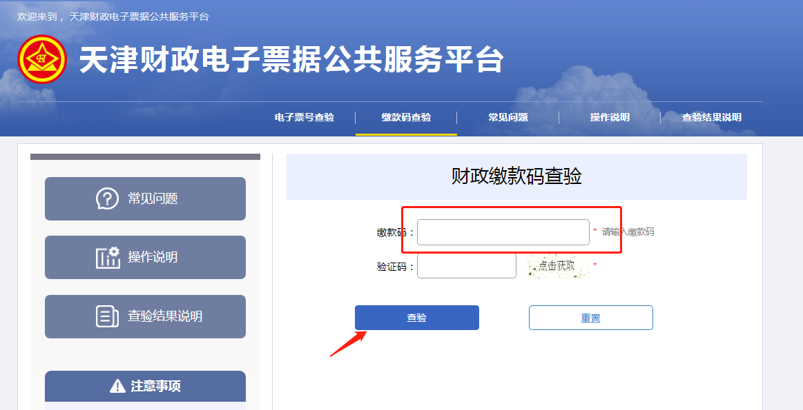 5.输入20位120开头缴款码点击查验,查验通过后可下载电子票据。